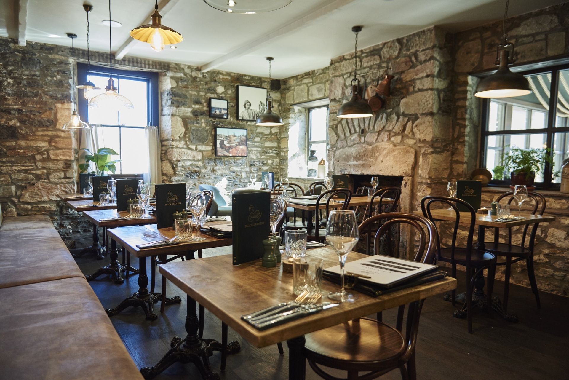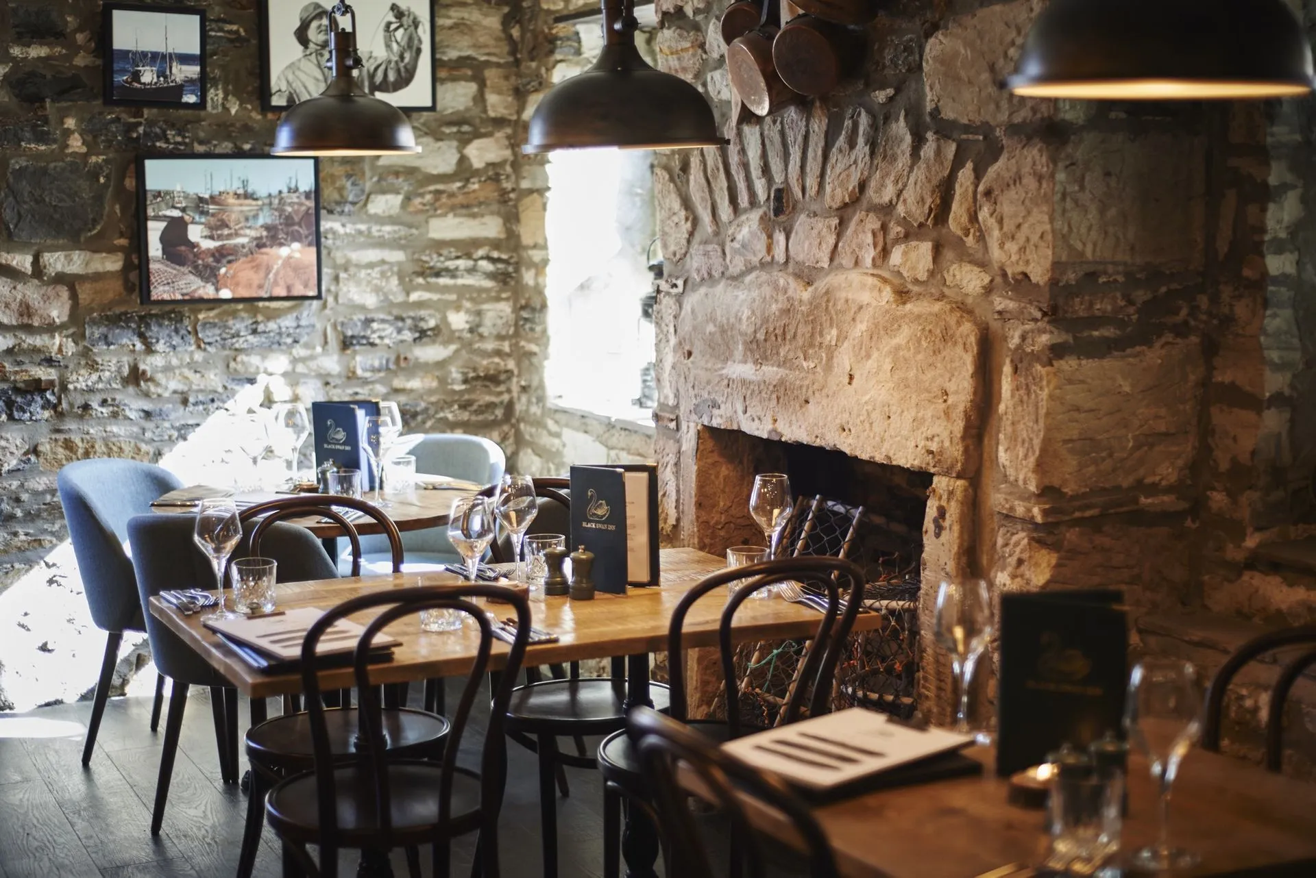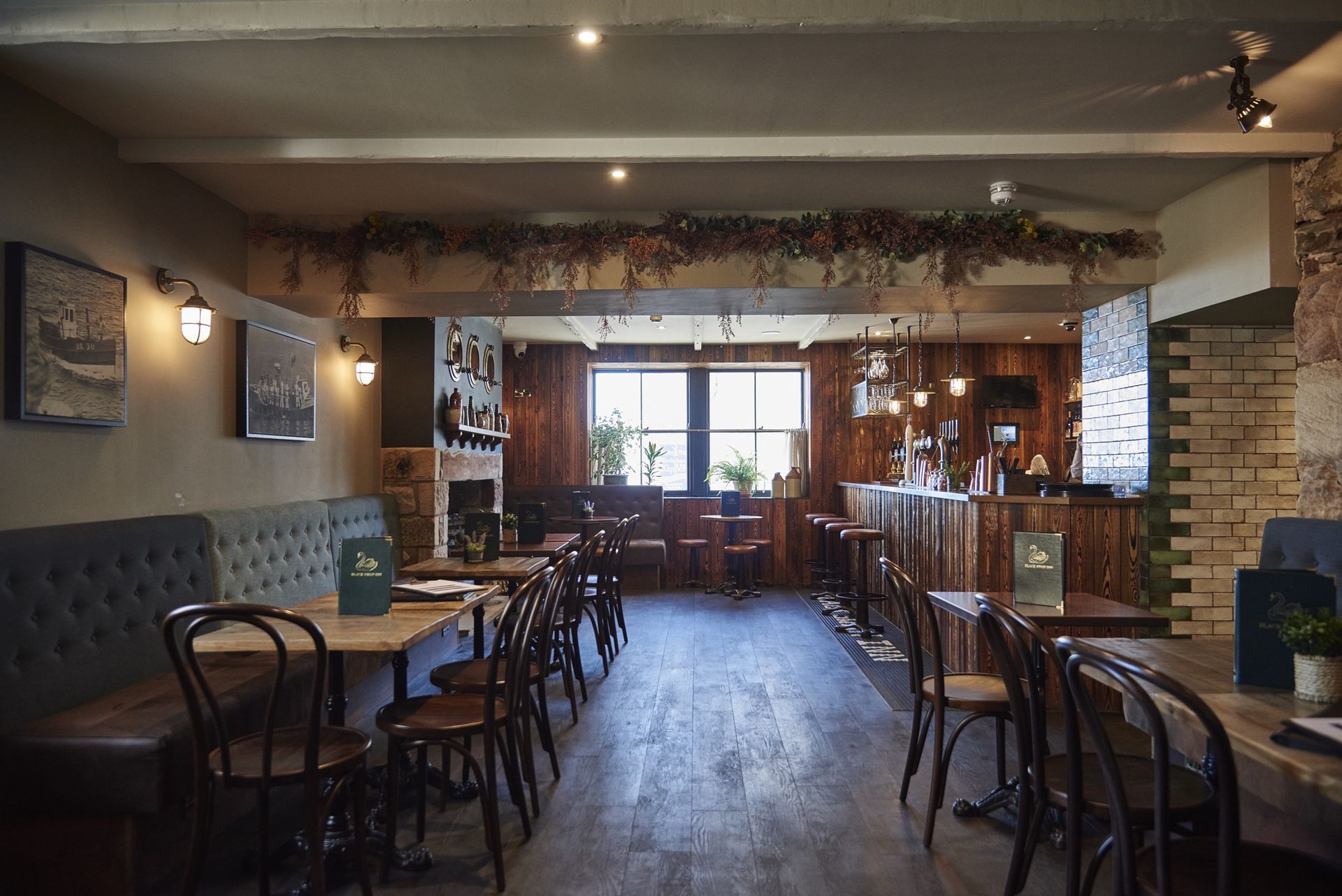 The Black Swan Inn, is one of Beadnell's oldest bars, set atop it's infamous harbour, we were asked to bring it in to the modern era, with a high element of design and a nod to its heritage, the building has been completely transformed in to a beautiful, stylish coastal venue.