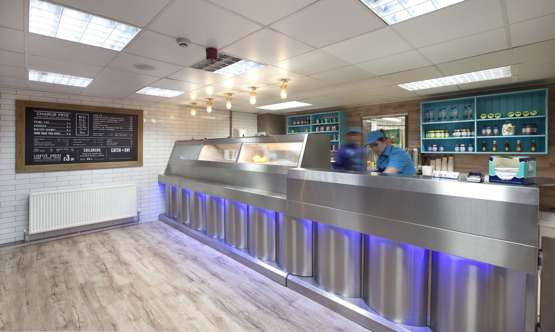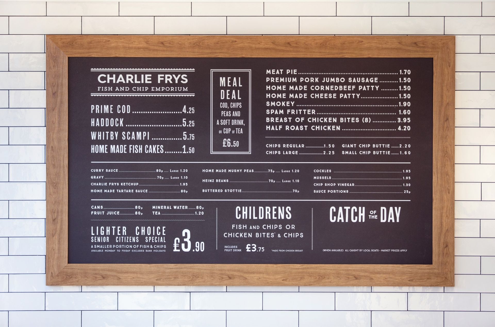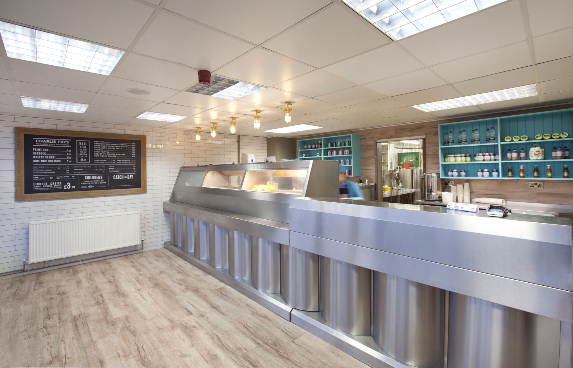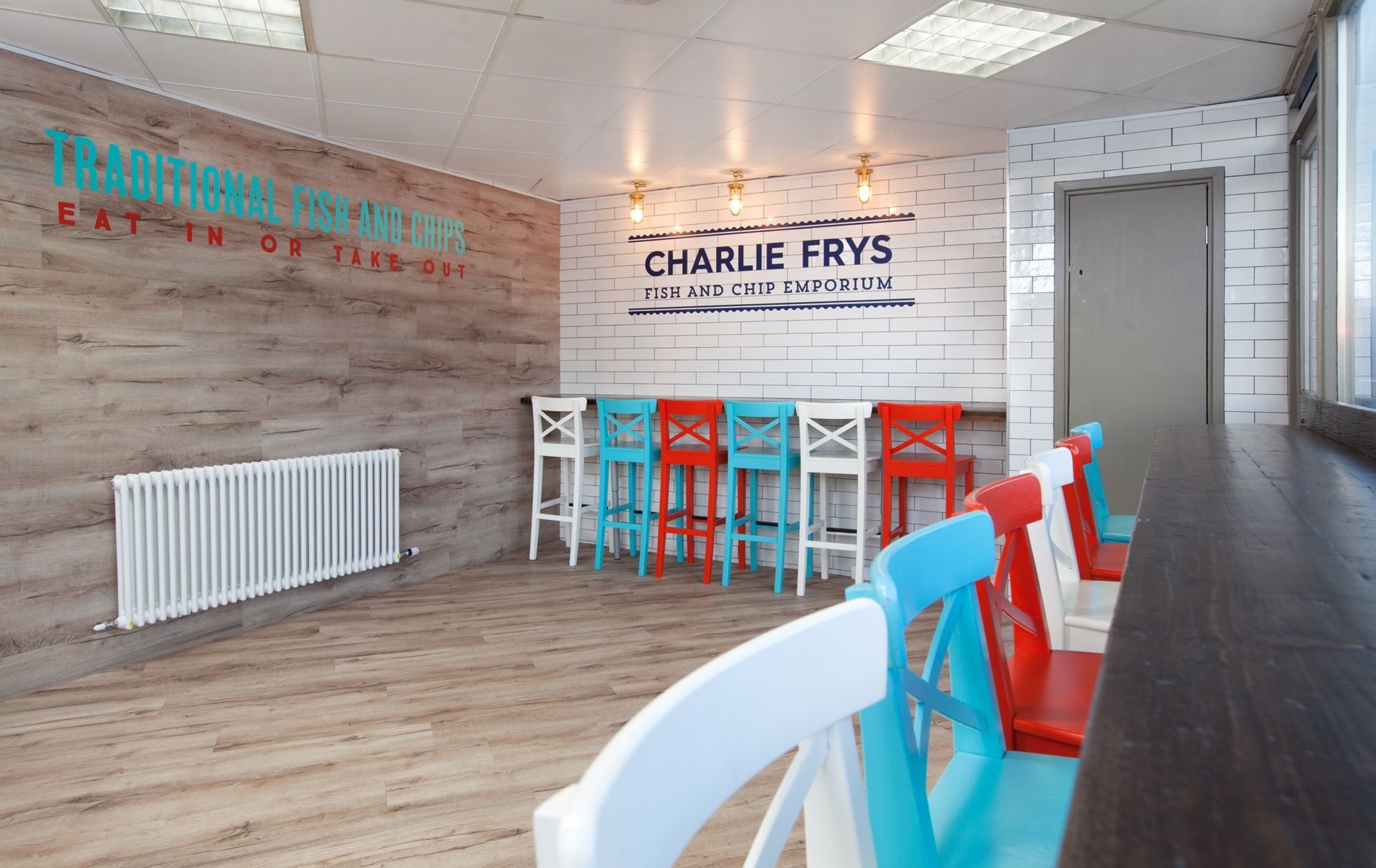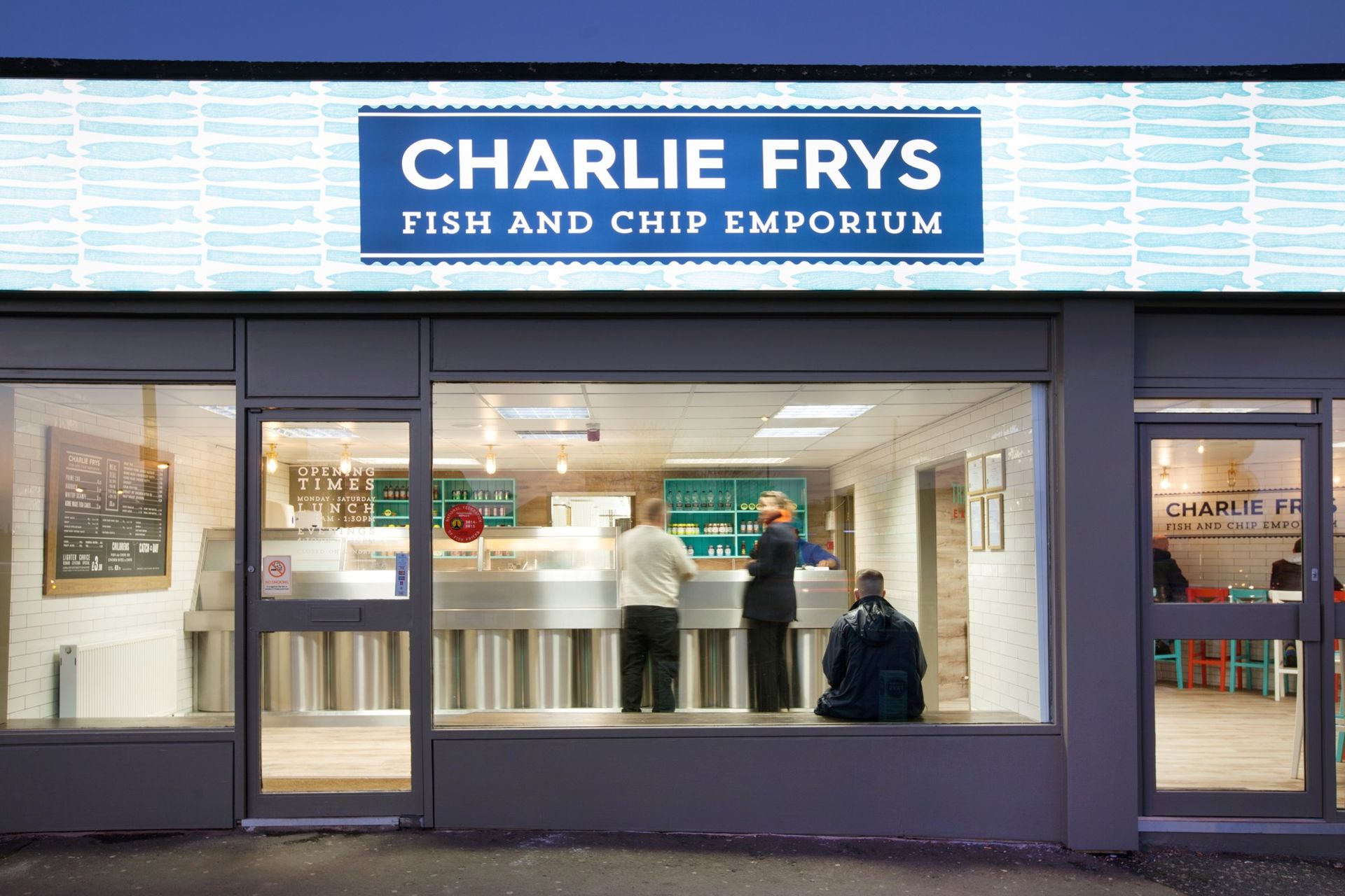 We were approached to create an identity for a new fish and chip shop venture. A great restaurant brand starts with a great name, once we'd come up with, 'Charlie Frys', the look and feel of the brand fell in to place as we created a traditional fish and chip shop interior with carefully considered graphics and POS that reinforce the fresh fish feel.